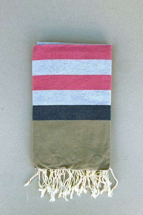 Gestreiftes Hamamtuch in Taupe, Blau, Grau und Fuchsia