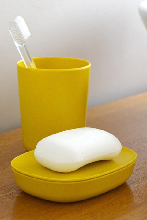 Die Seifenschale besteht aus zwei Bestandteilen, wodurch von der Seife laufendes Wasser in der unteren Schale aufgefangen werden kann