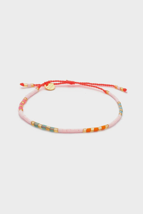Entdecke das Armband "Sweet String – White Season" von Blush Indigo, ein neon-orangefarbenes Bändchen, das deine Persönlichkeit zum Leuchten bringt. Die Intensität seiner Farbe verleiht den mattweißen Perlen eine feine Orange-Note. Die Perlen in Frosted Pink, Ocean Green, Orange, Hellblau und Gold fügen eine spielerische Eleganz hinzu. Ein Accessoire, das deine Stimmung und dein Outfit erhellt.