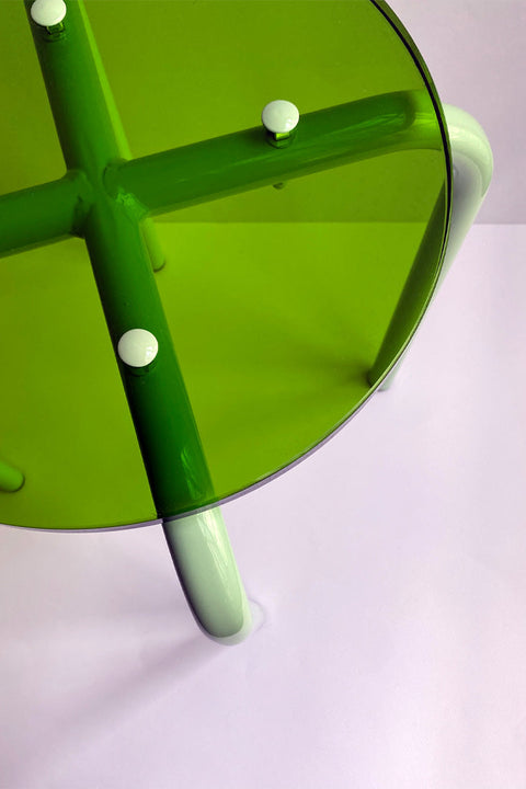 Erfrische dein Zuhause mit dem trendigen "Tabouret Pop" von Laurent Badier. Inspiriert von klassischen Schulstühlen, kombiniert dieser Hocker Acrylglas mit pulverbeschichteten Stahlbeinen für zeitgemäßen Stil und Robustheit. Die Sitzfläche in Grün und die mintfarbenen Beine verleihen jedem Raum eine frische Note. Genieße den Komfort und die Ästhetik dieses Designs, das perfekt zu modernen Wohnräumen passt.