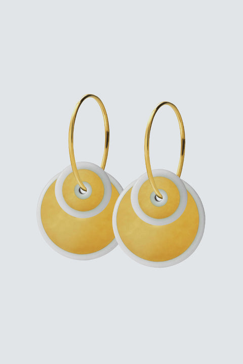 Die HALO Duo Gold Ohrringe von Scherning sind die perfekte Kombination aus Eleganz und Raffinesse. Hergestellt aus vergoldetem Sterlingsilber, sind diese Creolen aus handgemachtem Porzellan, das mit einem goldenem Dekor verziert ist, ein absoluter Hingucker. Ihre doppelten kreisförmigen Anhänger verleihen jedem Look eine subtile, aber auffällige Note. Ideal für den Alltag, bringen diese Ohrringe ein Hauch von Luxus in deine täglichen Outfits.