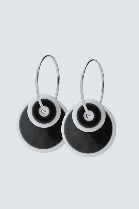 Tauche ein in zeitlose Eleganz mit den HALO Duo Ohrringen von Scherning. Diese Ohrringe verbinden kunstvolles Design mit hochwertigem Handwerk. Der doppelte kreisförmige Anhänger aus weißem Porzellan mit tiefschwarzem Dekor strahlt eine raffinierte Schönheit aus. Gefertigt aus Sterlingsilber und handgemachtem Porzellan, verleihen sie jedem Look einen Hauch von Luxus. Perfekt für den Alltag oder besondere Anlässe - ein unverzichtbares Accessoire für jede moderne Frau.